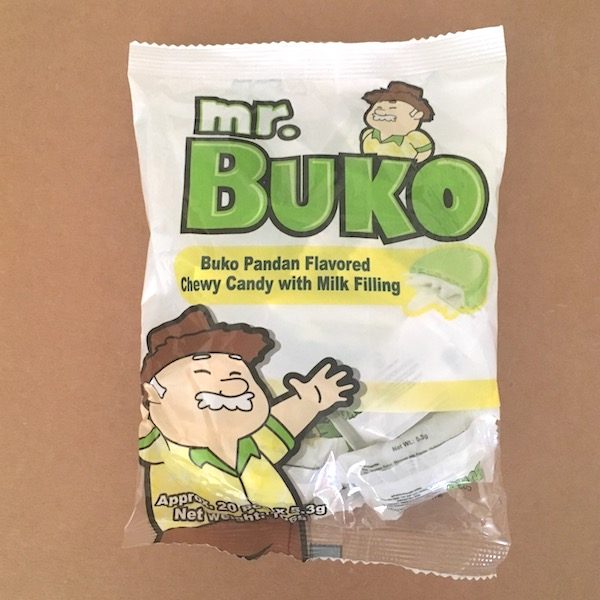 Buko is young white coconut and Pandan is green fragrant screwpine leaves.
