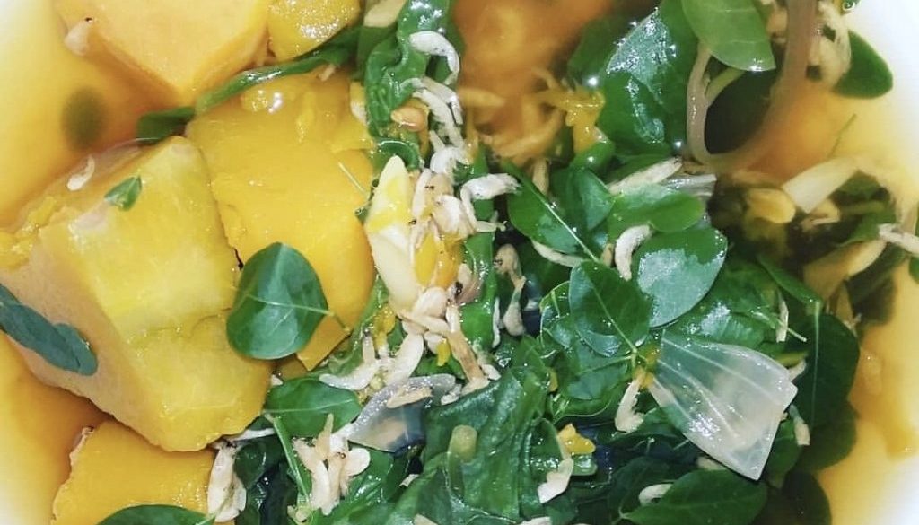A popular dark leafy vegetable in the Philippines is the leaves of the malunggay, which is now known to English speakers as “moringa.” The tree’s fruit pods are also used in certain Filipino stews.